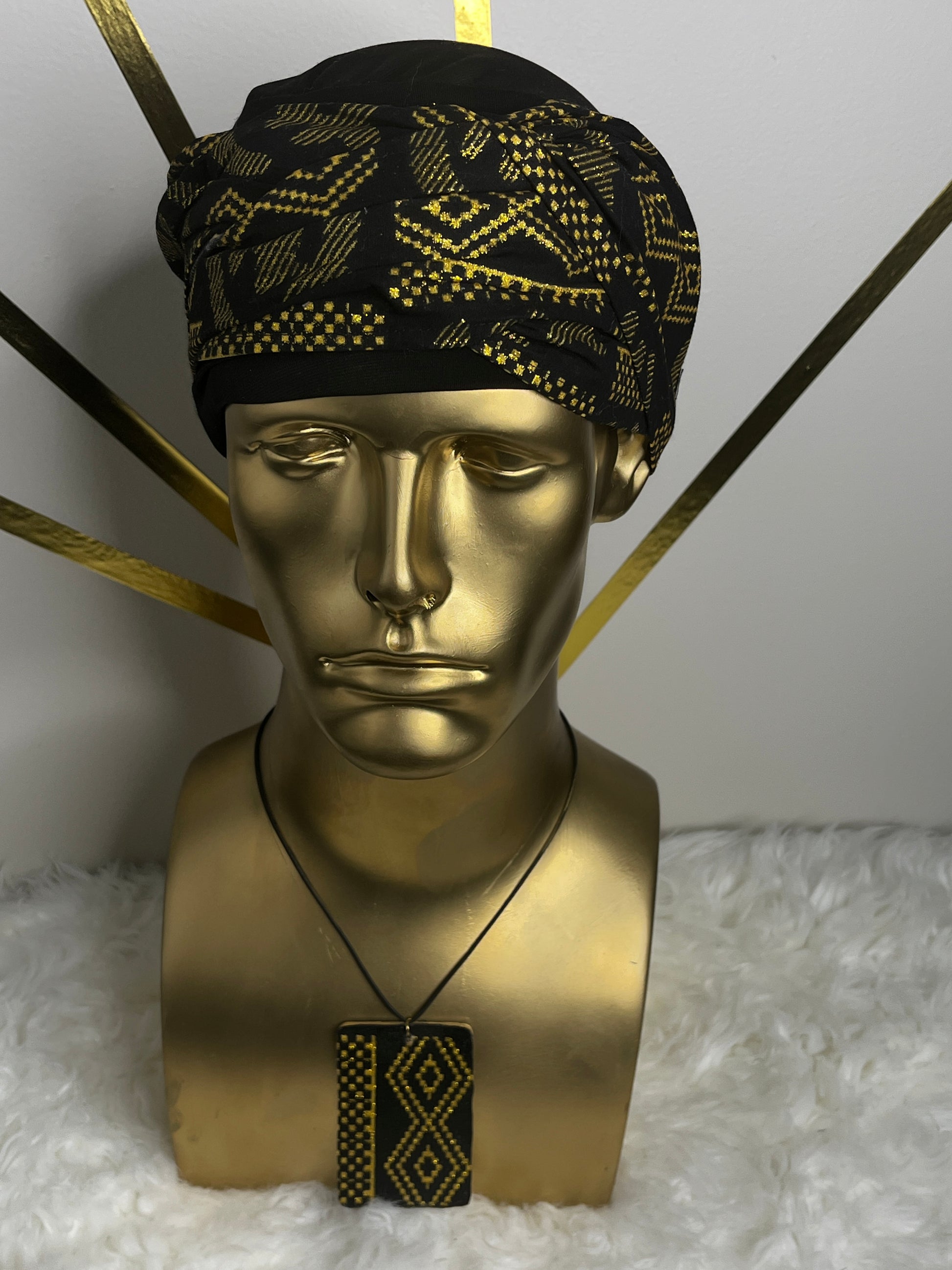 Black EZ PZ Turban With Black & Gold Gye Nyame Cotton Band