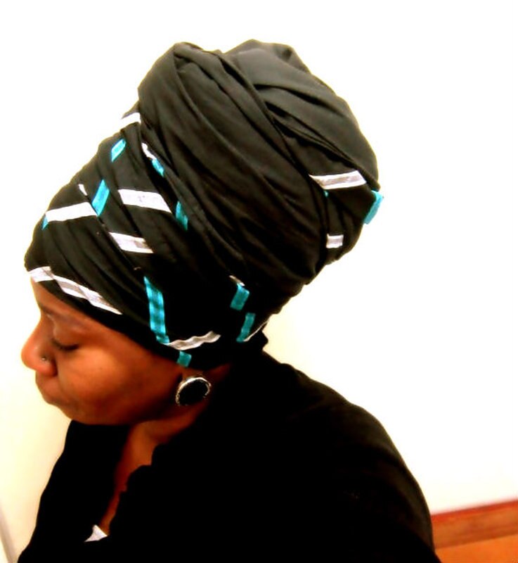 The head-wrap can be wrapped in numerous styles to suit my fancy, great hair protection.