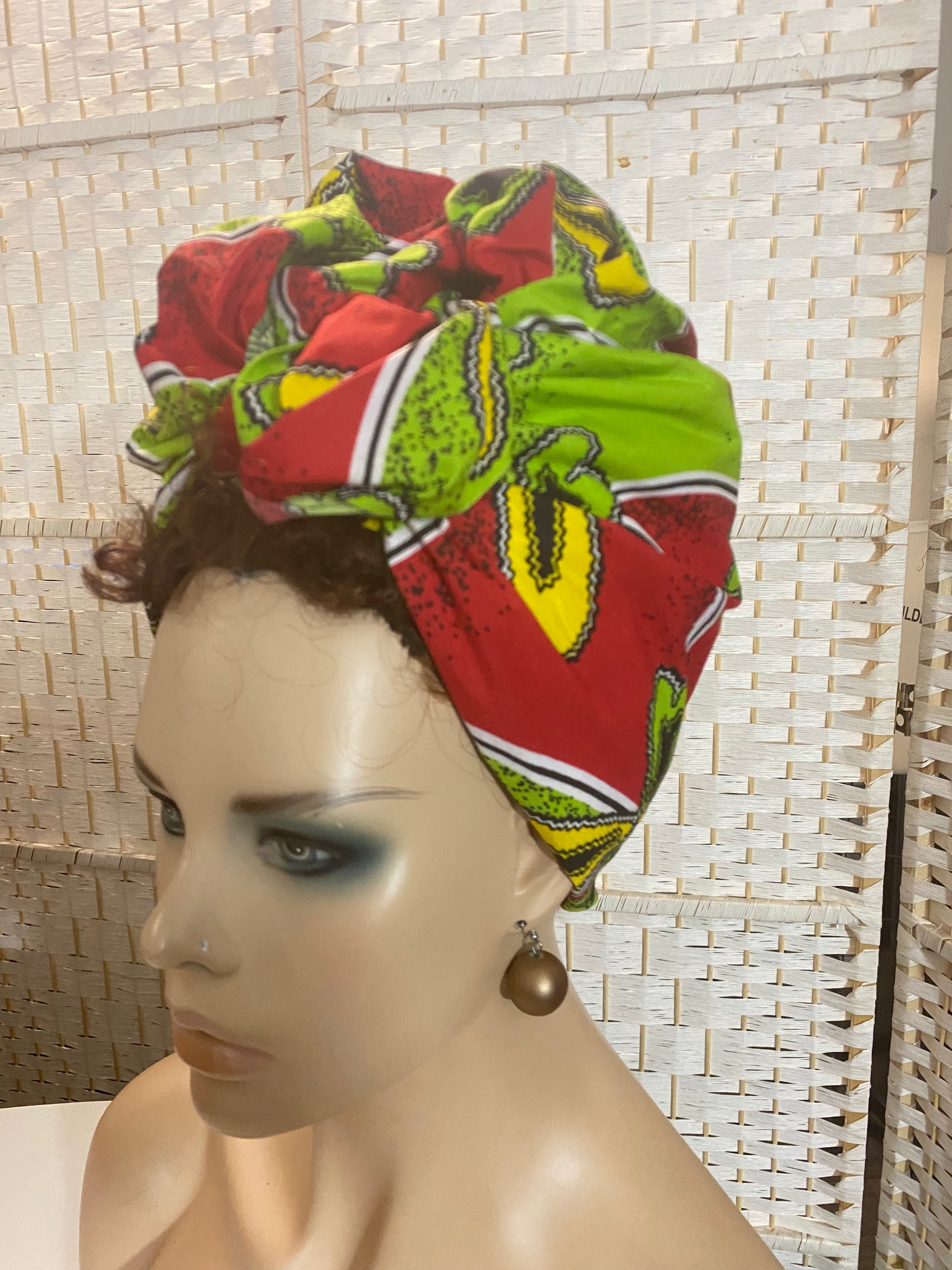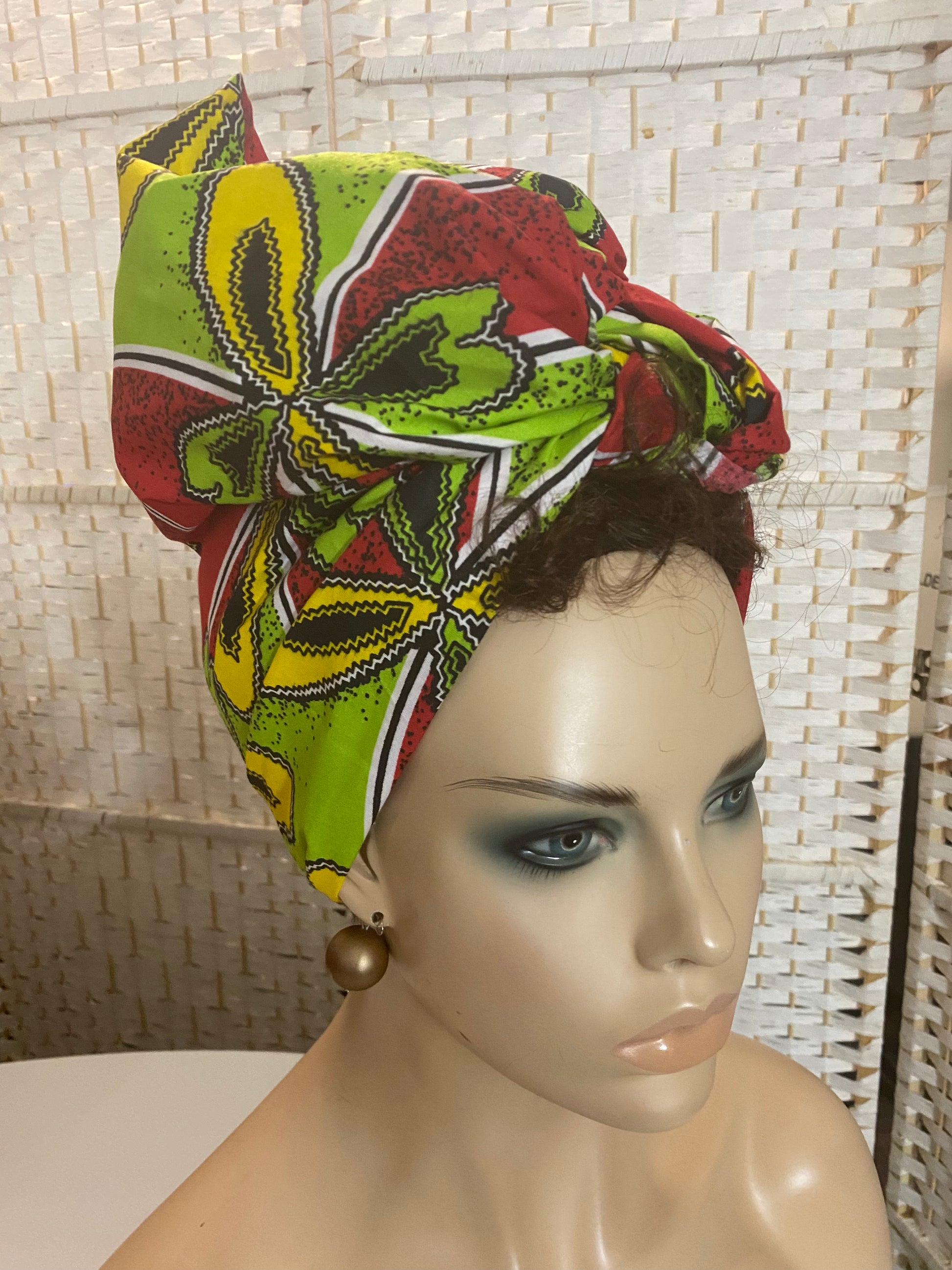 In order to preserve moisture in your hair, wrap with a silk or satin hair scarf before putting on the cotton wrap. Wrap in your desired style.