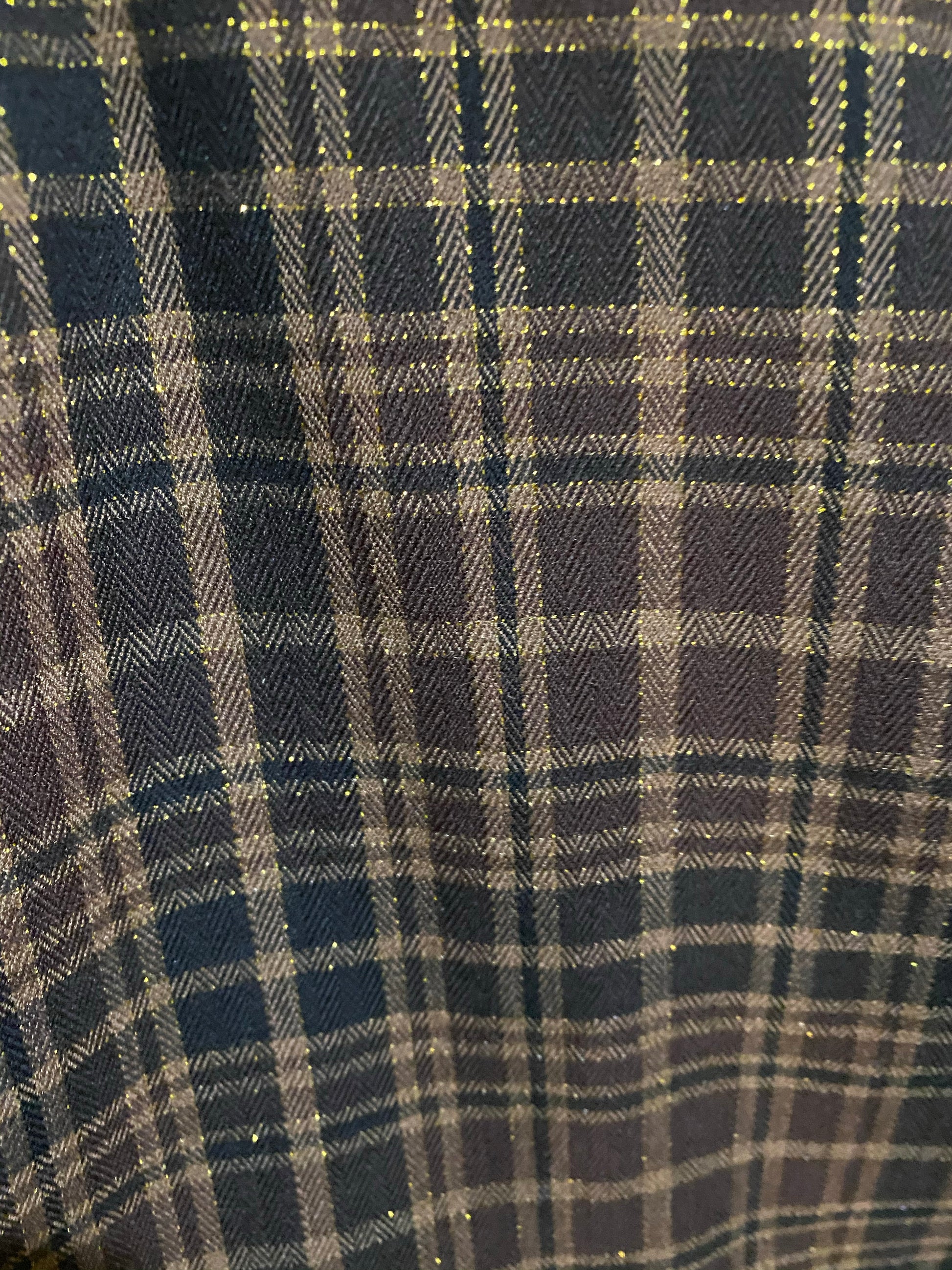 Made from brown plaid cotton with gold highlights. Adorn your crown in style, good for formal or semi-formal use.