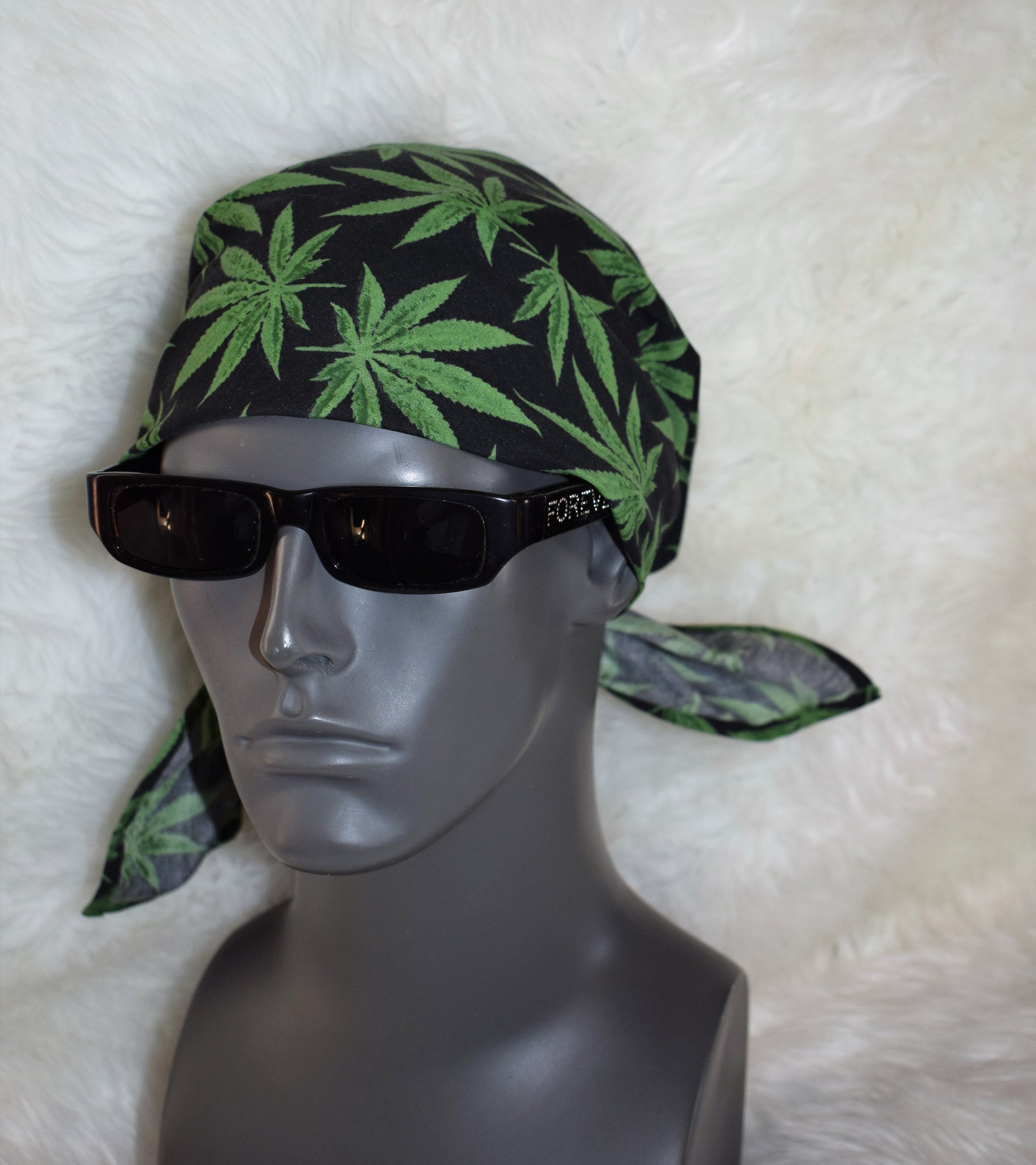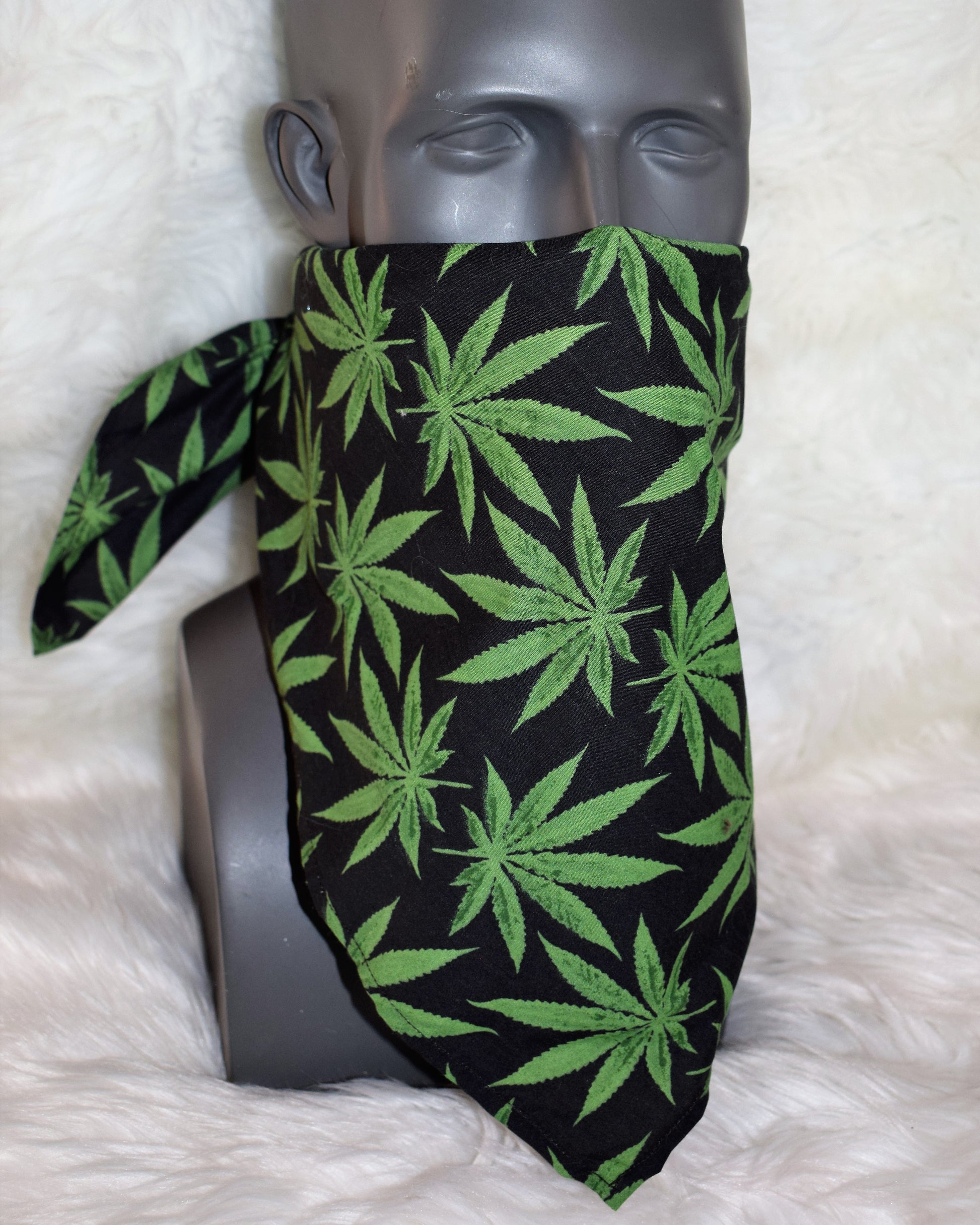 Bandanna is made from cotton fabric. The background of the is black with green cannabis print. Bandannas are great for everyday use.