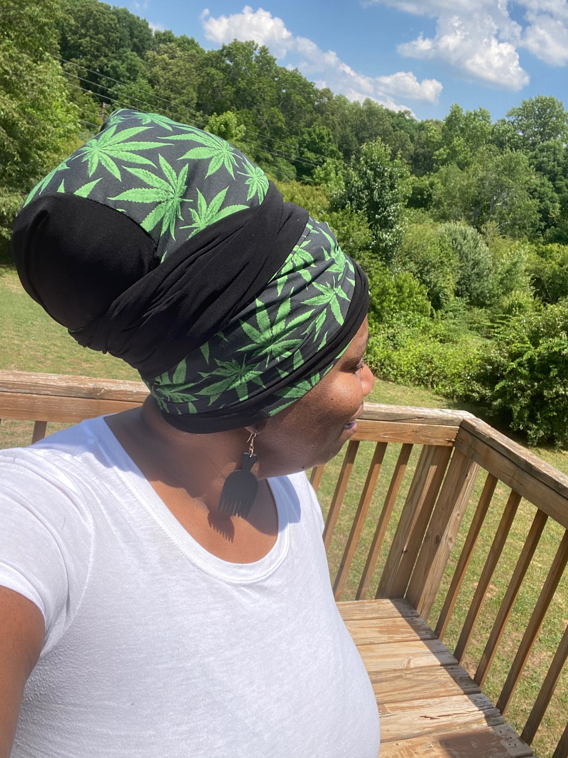 The wrap is made from quality lightweight stretchy knit fabric that wont shrink or pill, a center panel in green cannabis print.