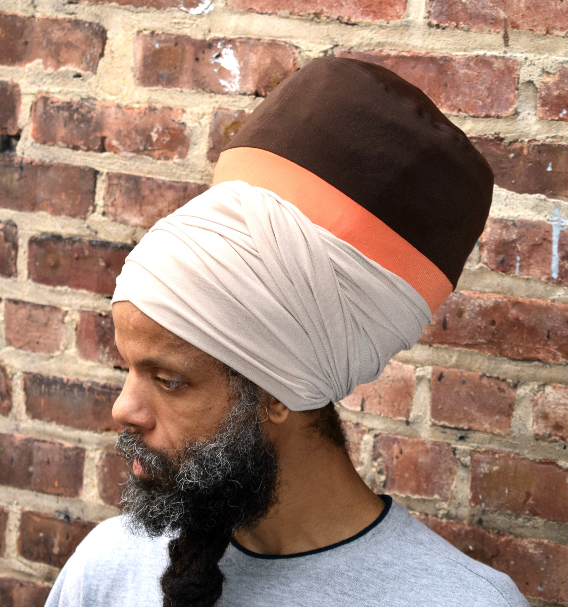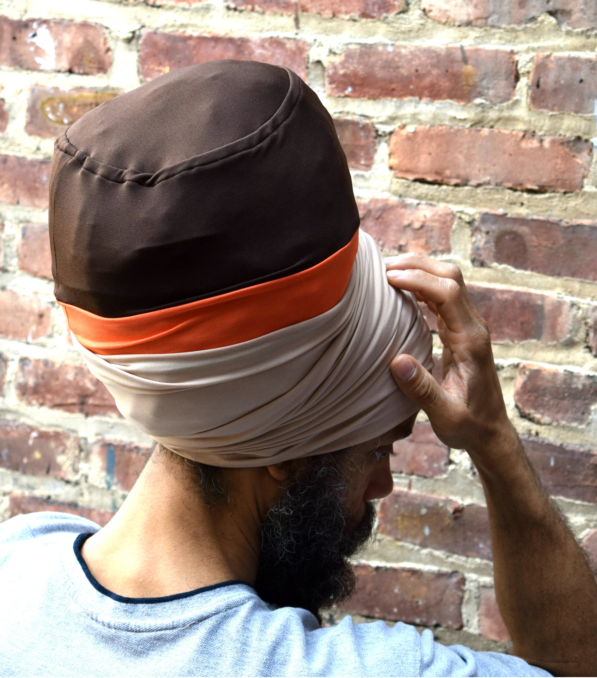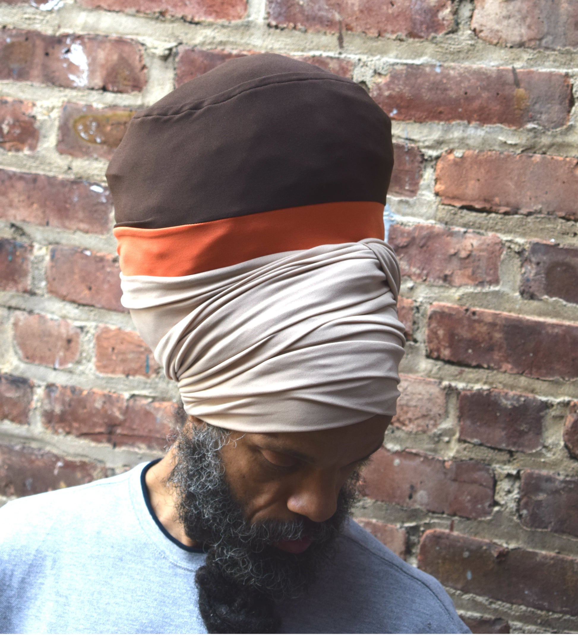 The tam wrap is different to the EZ wrap.. It has a circle crown like a tam and a single band. Simply pull on over hair and wrap the bands to your likeness.