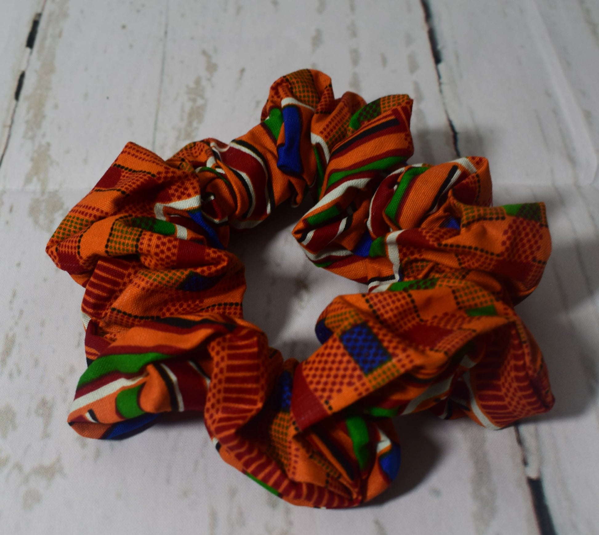 Our scrunchies are made from African inspired cotton. Done in oversized style for a dramatic effect. Soft stretchy elastic is encased in the scrunchy, won't snag or pull on hair.
