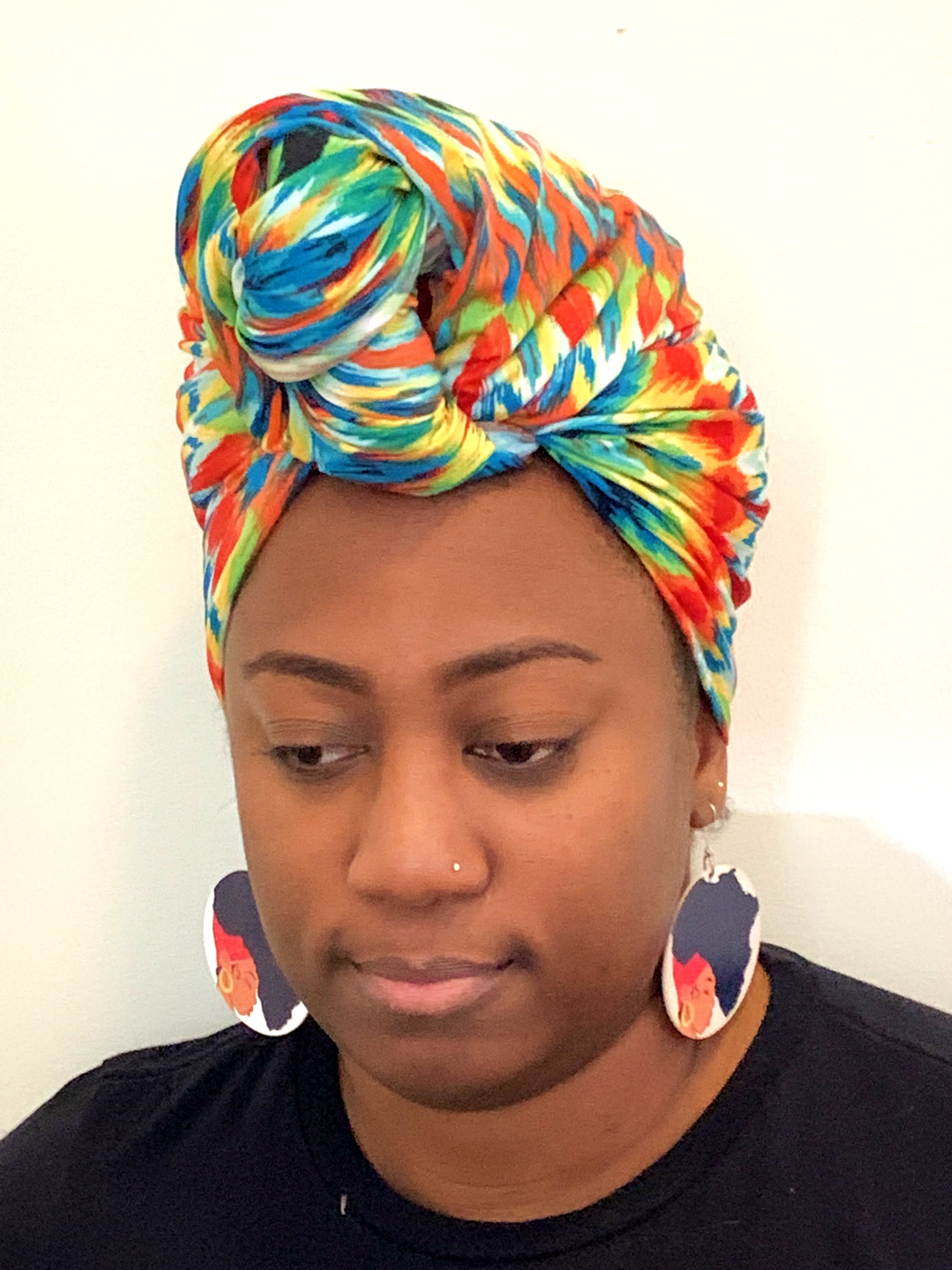 The head-wrap can be wrapped in numerous styles to suit my fancy, great hair protection.