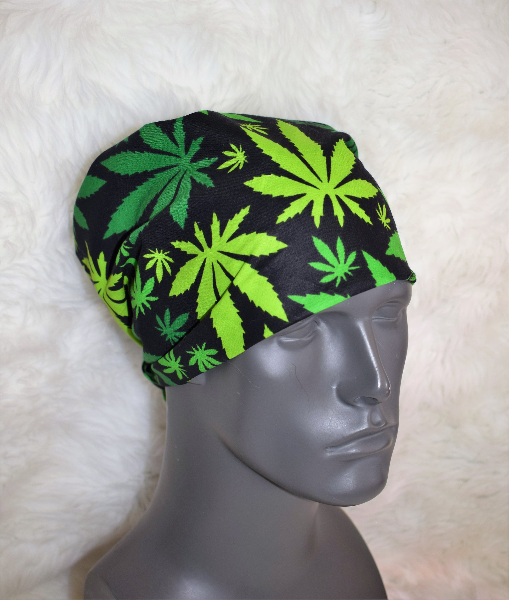 Bandanna is made from cotton fabric. The background of the is black with two shades of green cannabis print. Bandannas are great for everyday use.