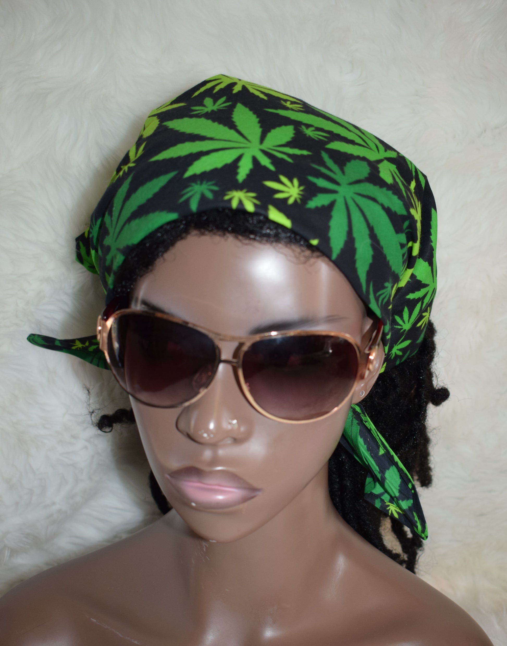 Bandanna is made from cotton fabric. The background of the is black with two shades of green cannabis print. Bandannas are great for everyday use.