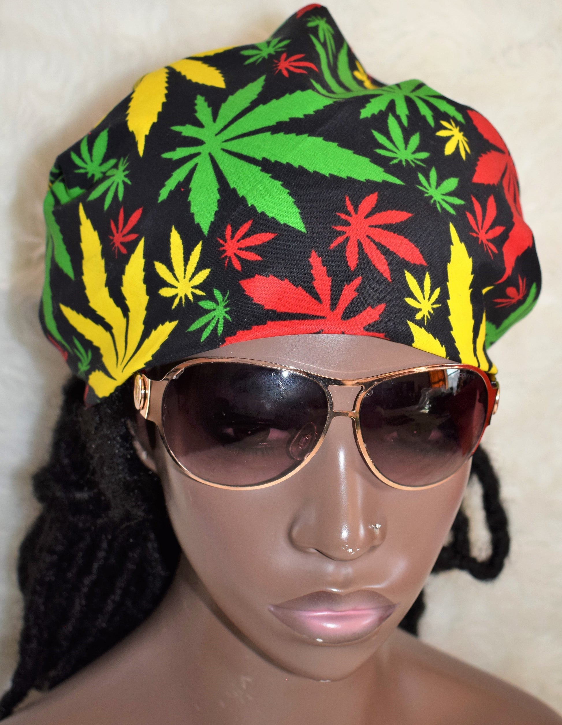 Bandanna is made from cotton fabric. The background of the is black with green ,yellow & red cannabis print. Bandannas are great for everyday use.