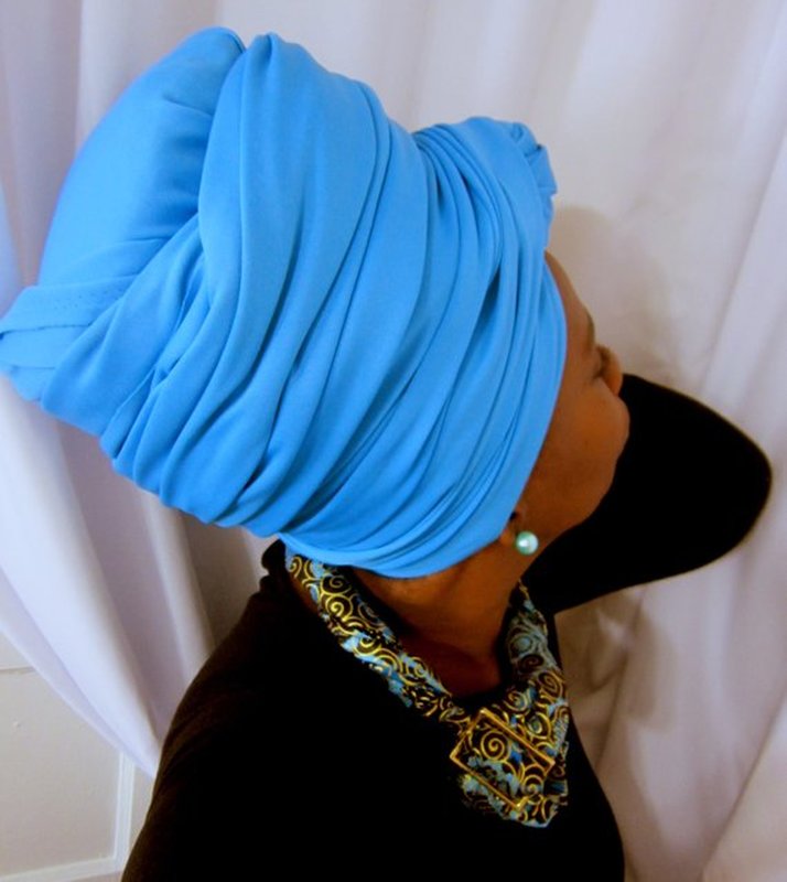 The head-wrap can be wrapped in numerous styles to suit my fancy, great hair protection.