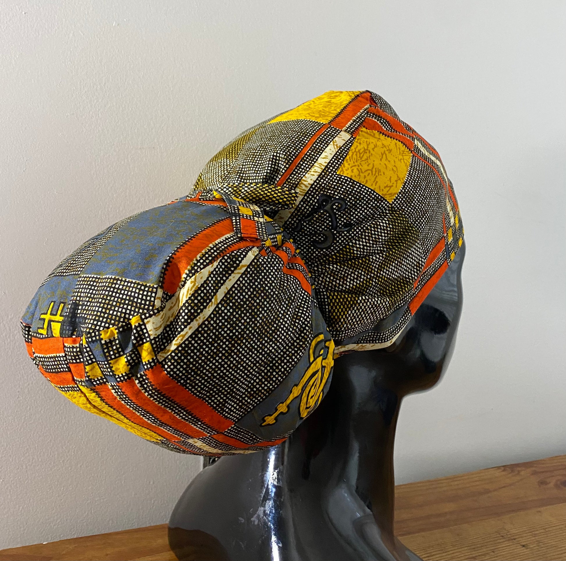 Roots is made from lightweight African inspired cotton and lined with soft luxurious satin. The satin helps your hair retain it's moisture so it won't dry out.