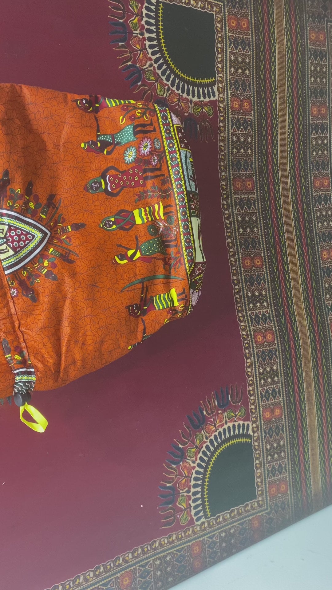 Our Tribal tote is made from African inspired print fabric and lined with cotton fabric.