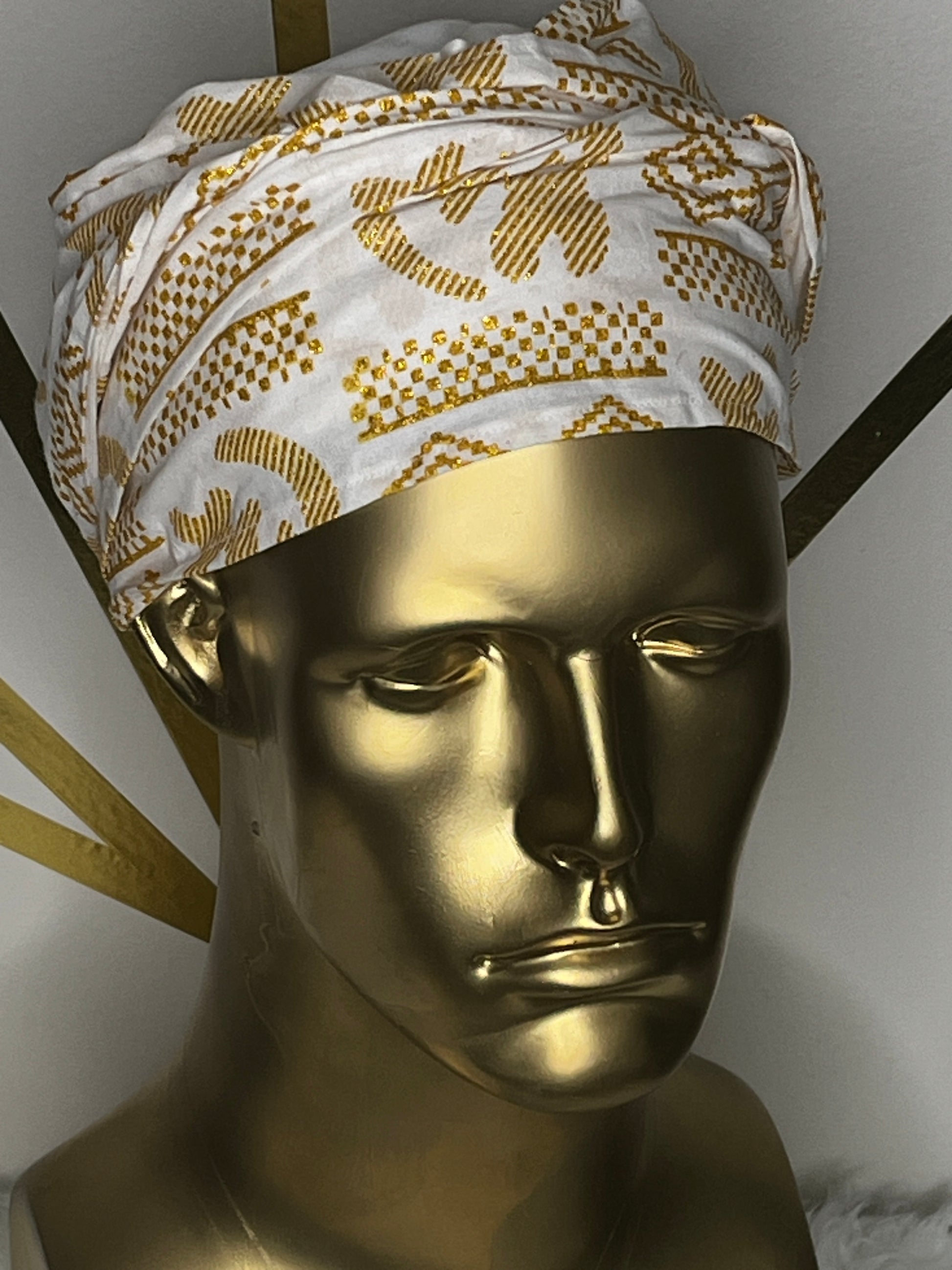 White EZ PZ Turban With White & Gold Gye Nyame Cotton Band