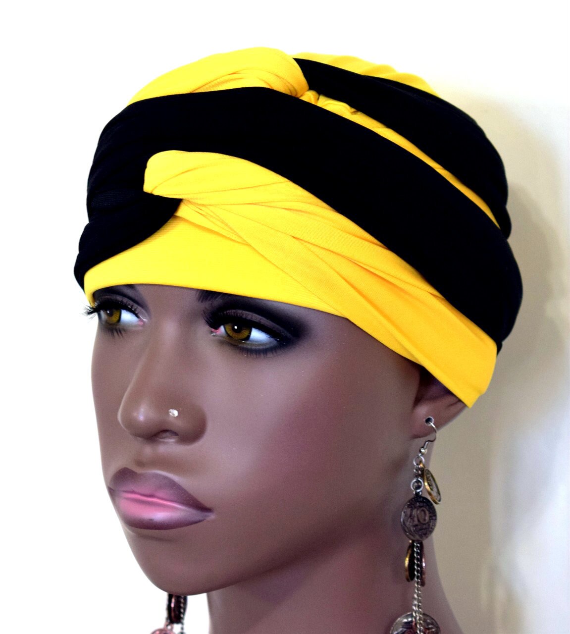 The wrap is made with a crown and two long bands making it very ez to wrap.
