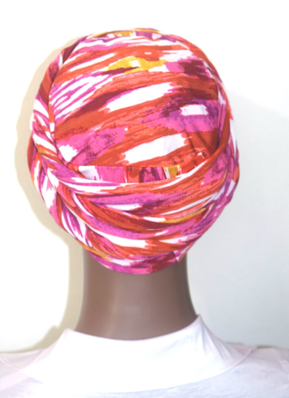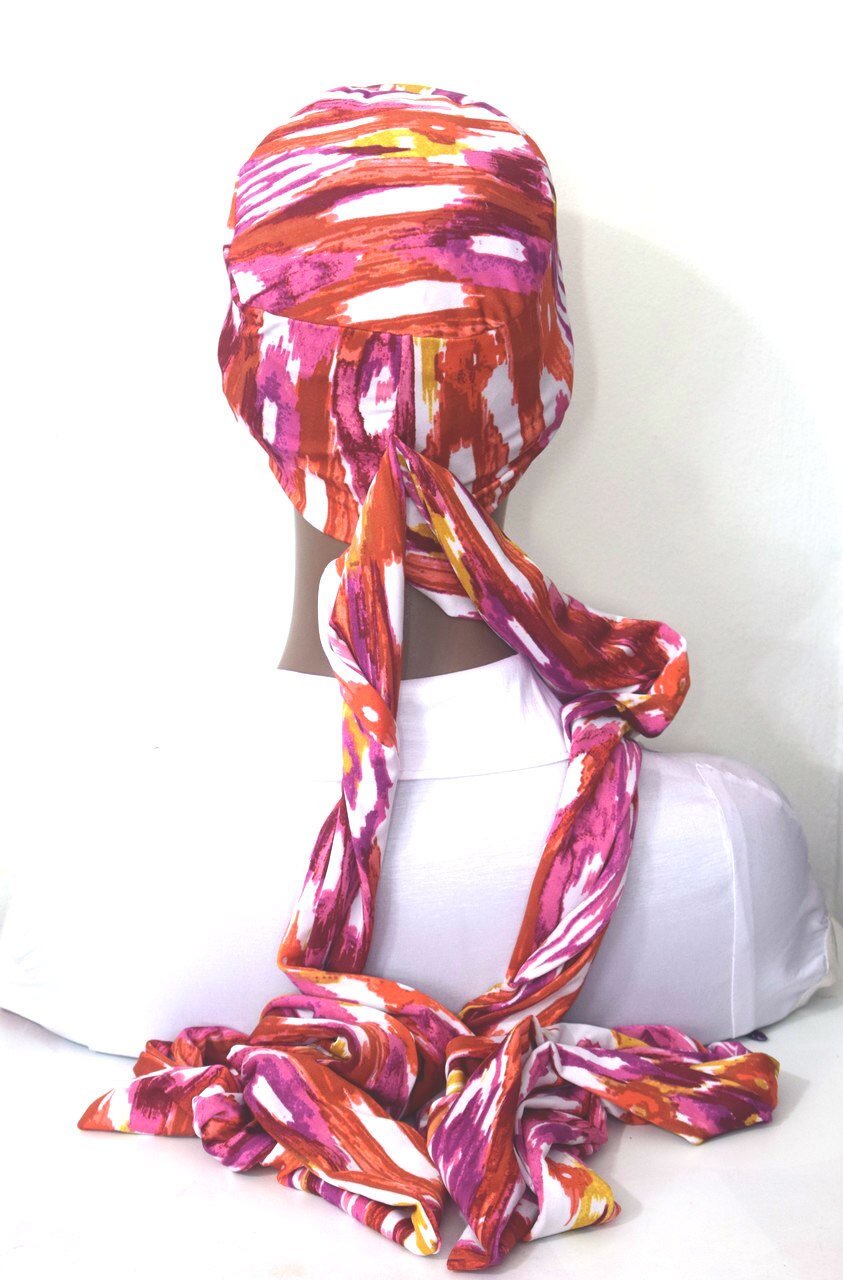 The wrap is made with a crown and two long bands making it very ez to wrap.