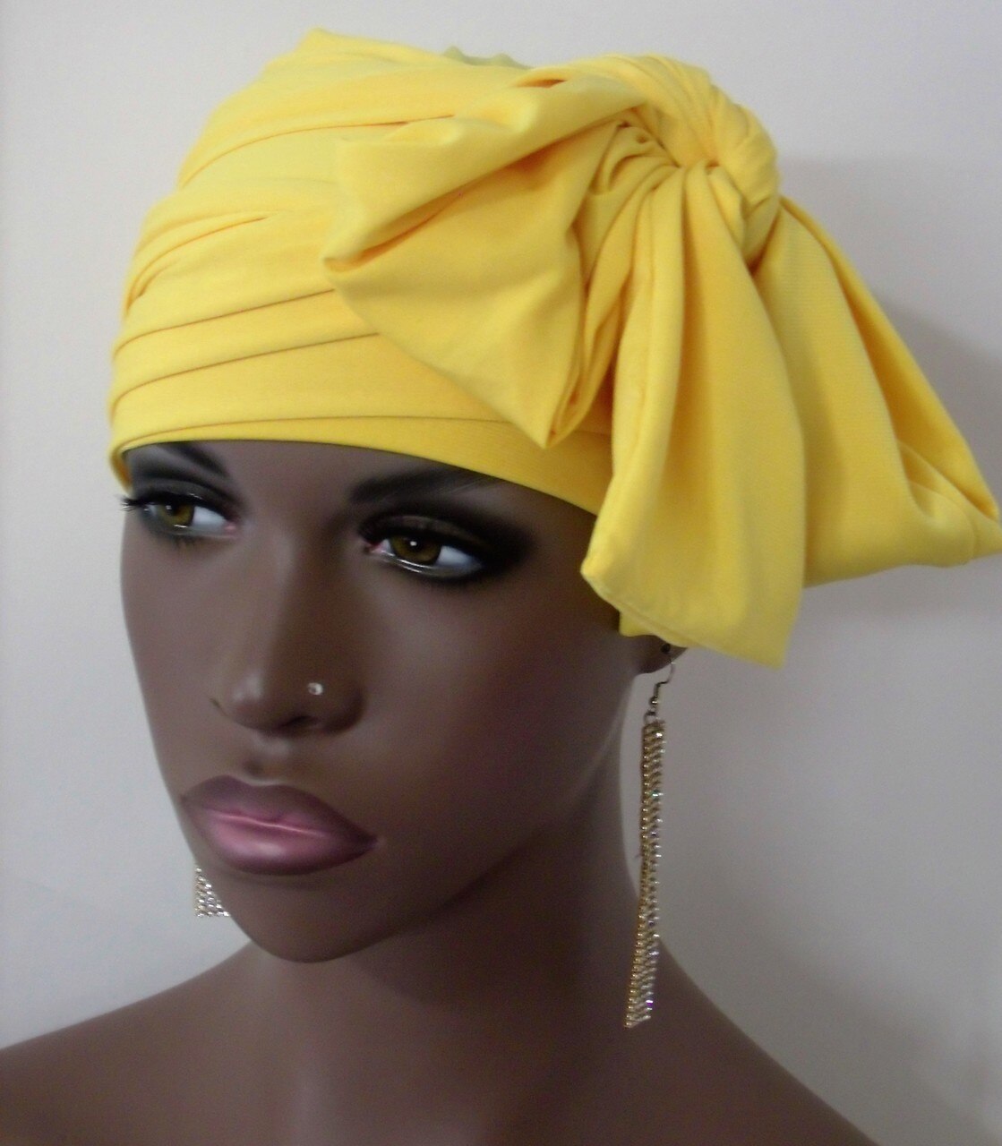 The wrap is made with a crown and two long bands making it very ez to wrap.